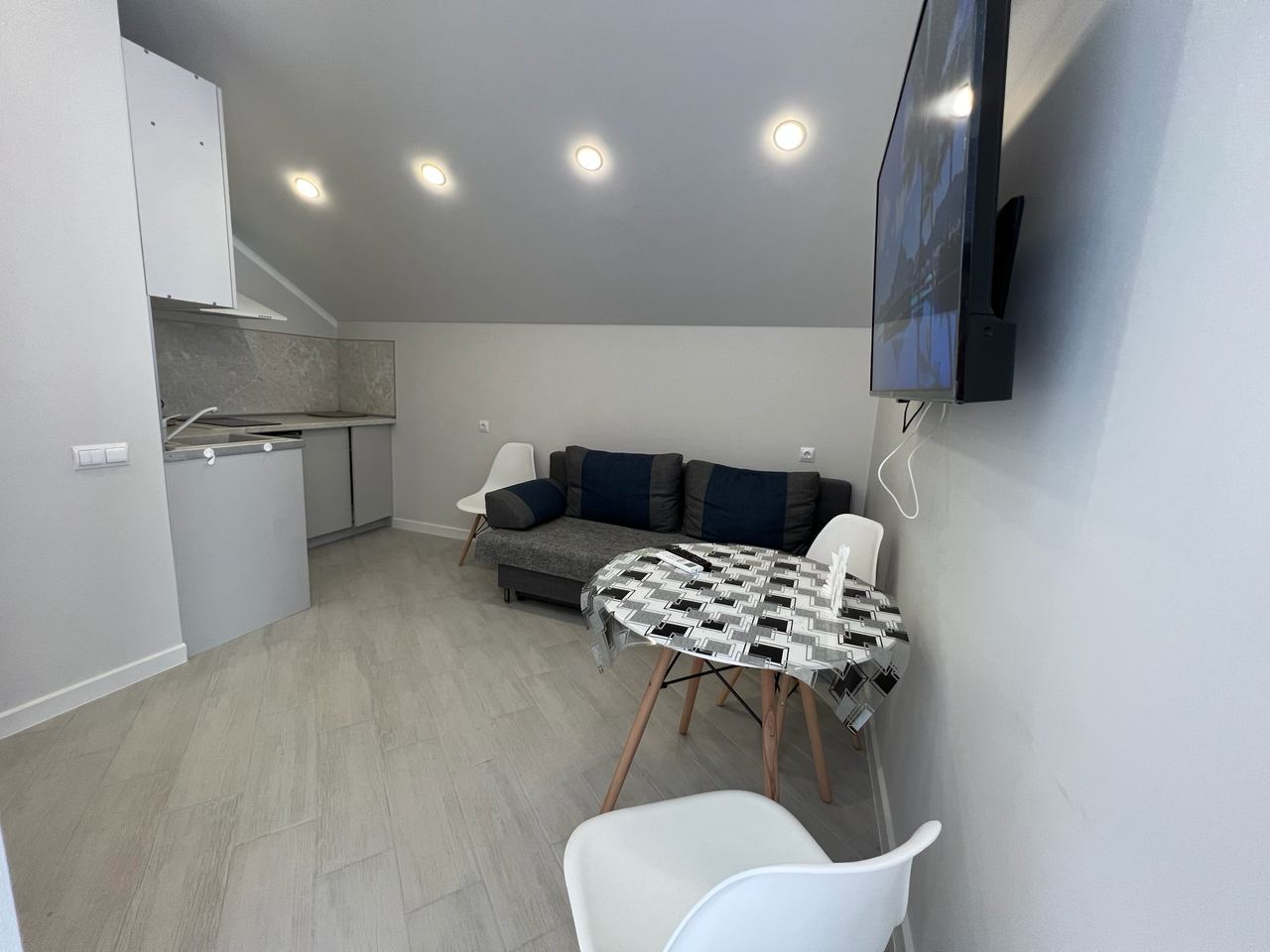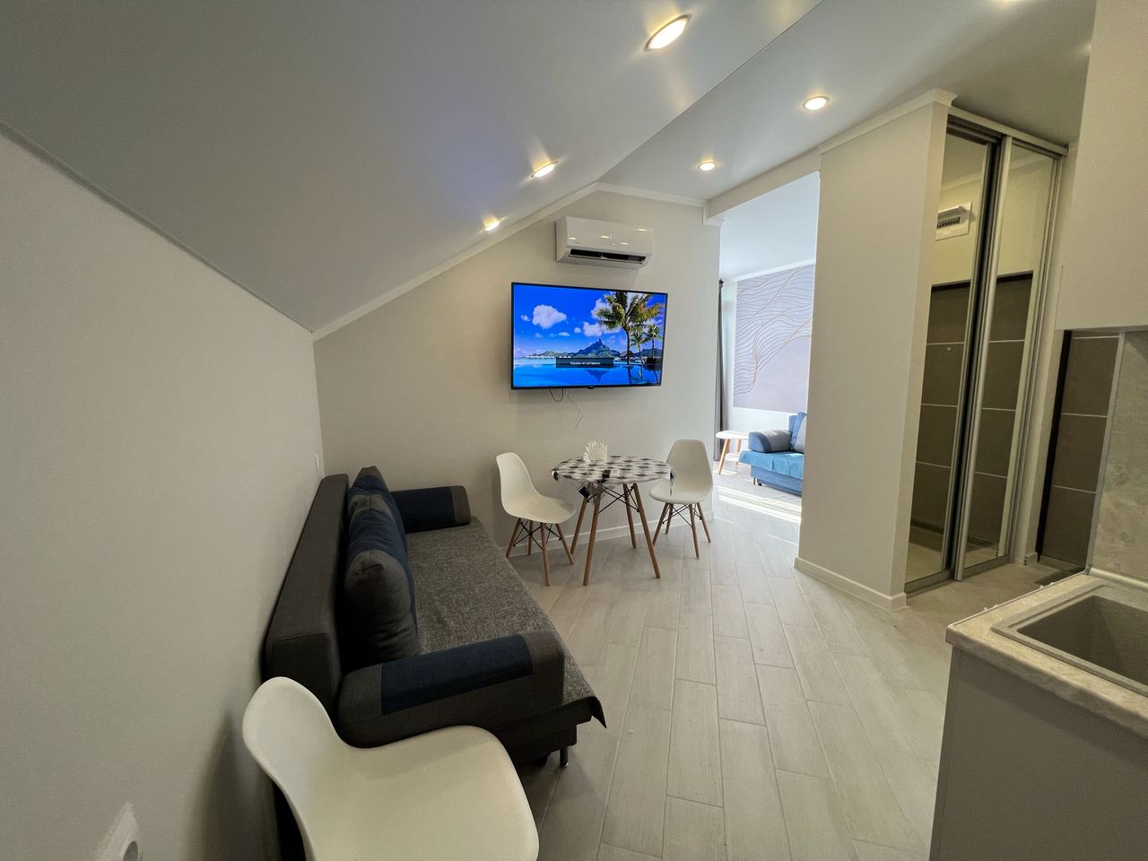 Площадь апартаментов 27 м2. В курортном городке. Сочи ул. Прибрежная дом 10. Дом клубного типа, закрытая территория. Тупиковая улица, 2я линия от моря. Прямой вид на море УДОБСТВА В НОМЕРЕ: * Двуспальная диван-кровать * Диван-кровать* Утюг * Кондиционер * Детская кровать/манеж (по запросу) * Телевизор КУХОННАЯ ЗОНА: * Электроплита * Микроволновая печь * Электрочайник * Холодильник * Посуда ВАННАЯ КОМНАТА: * Душ * Туалет * Фен ФРАНЦУЗСКИЙ БАЛКОН: