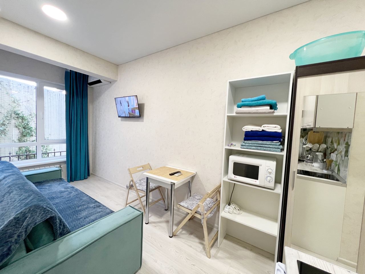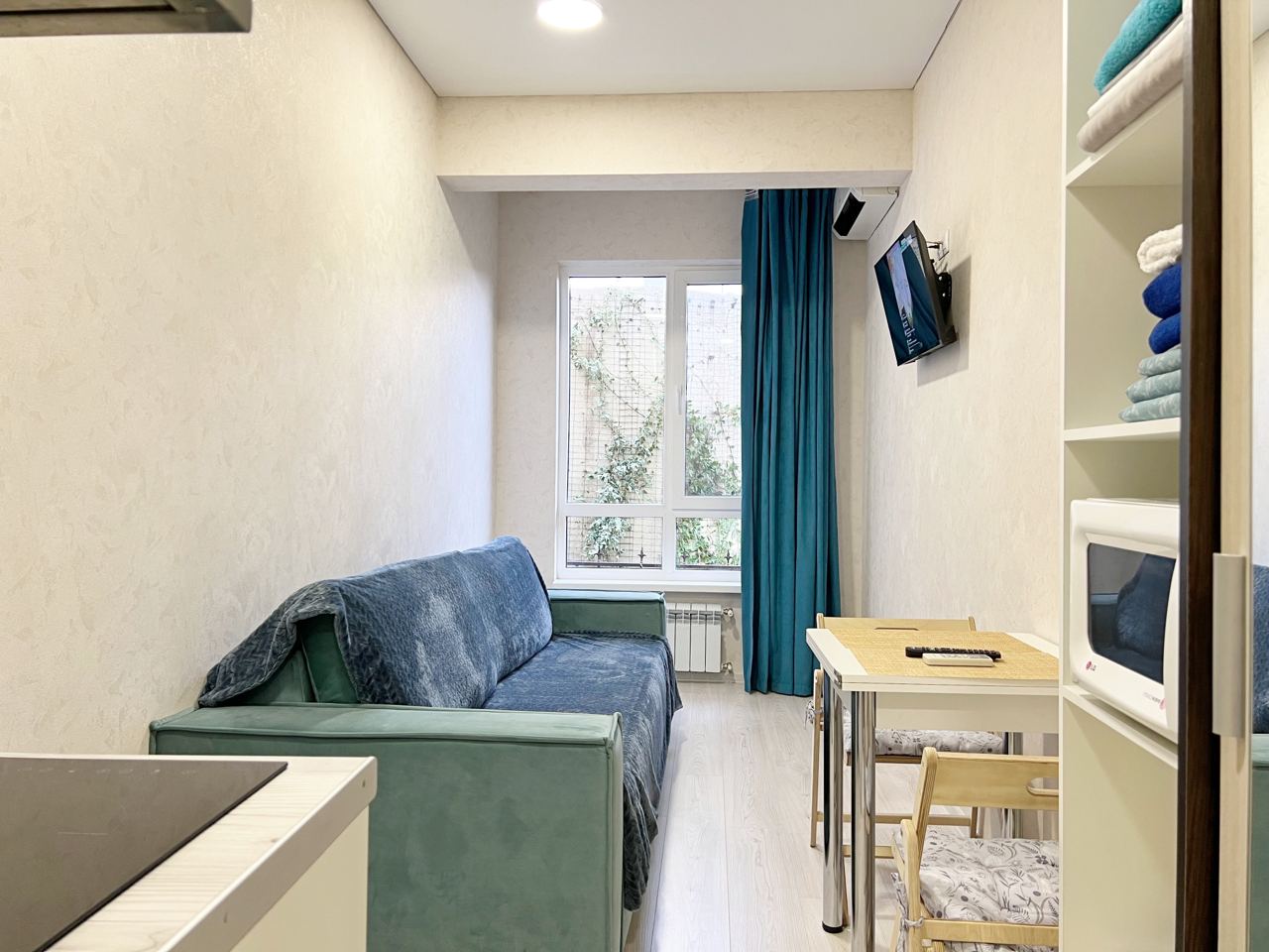 Площадь апартаментов 20 м2. С видом на горы и город. Сочи ул. Красная дом 34ж. Дом клубного типа, закрытая территория. УДОБСТВА В НОМЕРЕ: * Диан кровать * Тумбочка * Шкаф * Утюг * Собственный балкон * Кондиционер * Телевизор * Детская кровать/манеж (по запросу) КУХОННАЯ ЗОНА: * Электроплита * Микроволновая печь * Электрочайник * Холодильник * Кухонный стол/стулья * Посуда ВАННАЯ КОМНАТА: * Полноценная ванная * Туалет * Фен * Ванные принадлежности * Стиральная машина ТЕРРИТОРИЯ: * Баня * Тренажеры * Йога центр * зона BBQ * Парковка * Террасы